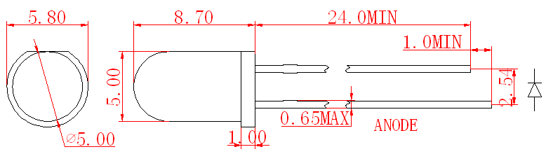 2.特に指定がない限り、公差は±0.25mm(0.01˝)です。光度許容差は±10%です。