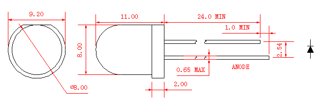 2.特に指定がない限り、公差は±0.25mm(0.01˝)です。光度許容差は±10%です。